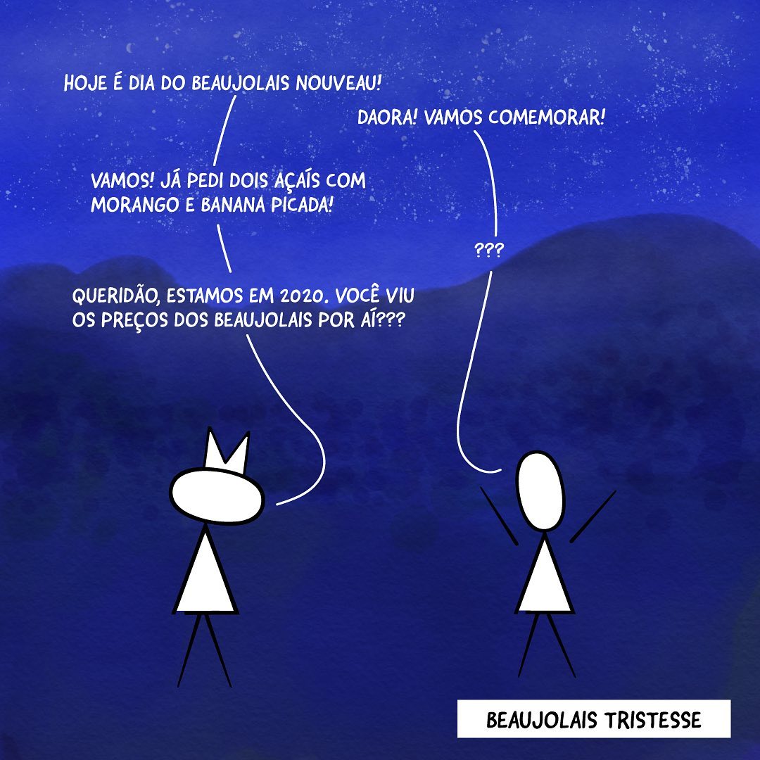 Personagem (coroa): "QUERIDÃO, ESTAMOS EM 2020. VOCÊ VIU OS PREÇOS DOS BEAUJOLAIS POR AÍ???"