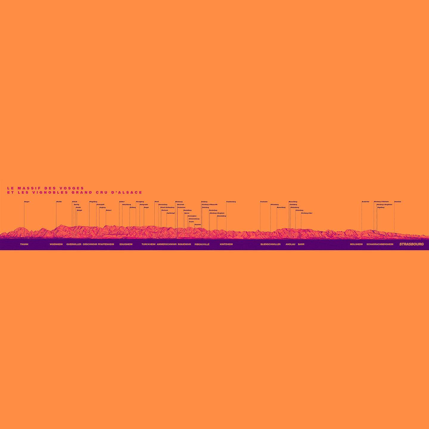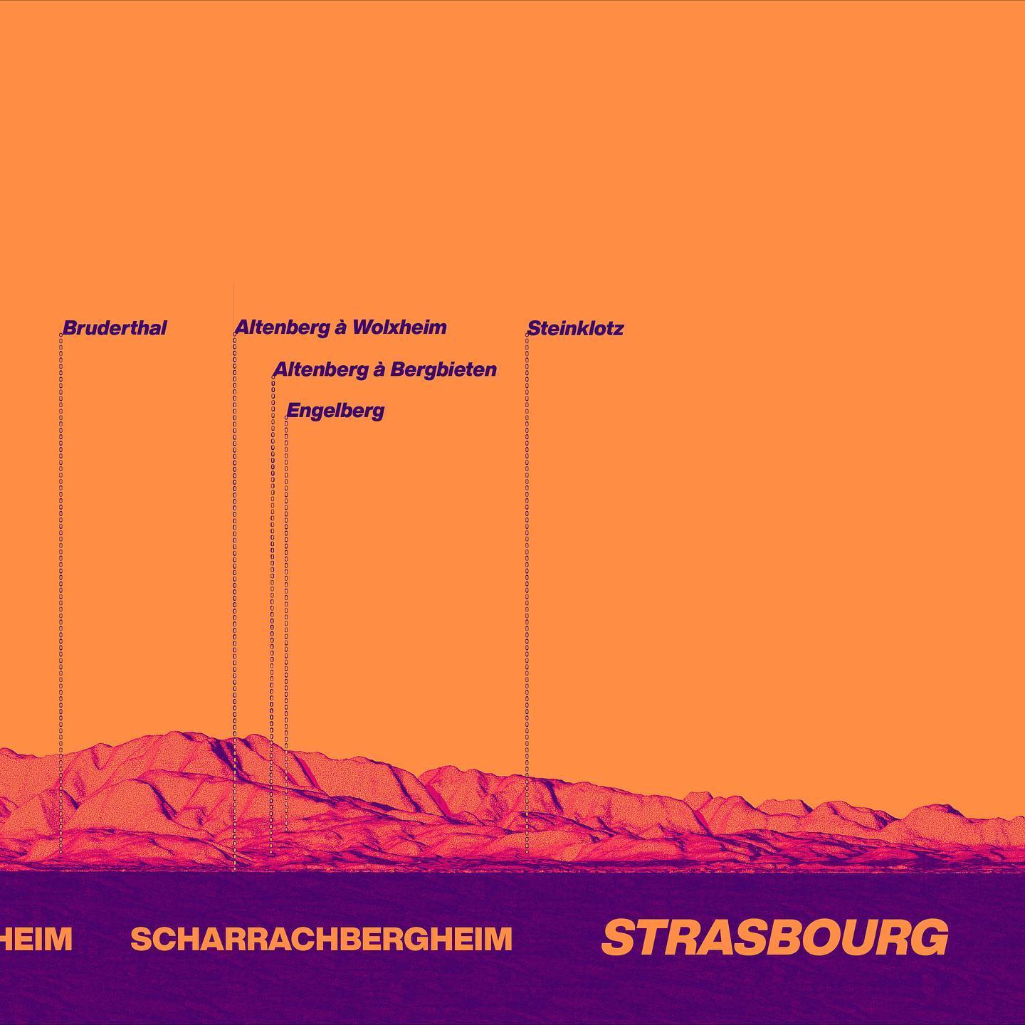 Um exercício cartográfico estético e técnico, mapeando uma das regiões mais complexas da França (devido à grande quantidade de lieux-dits e geologia variada) de uma forma visualmente única, enfatizando a proteção que as montanhas dos Vosges oferecem aos vinhedos (shadow effect).