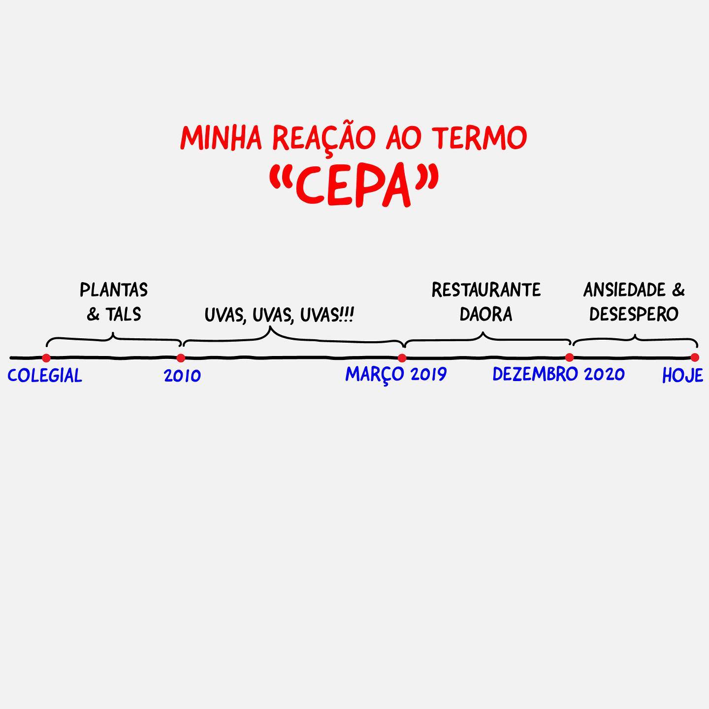 Um gráfico de linha do tempo com o título: MINHA REAÇÃO AO TERMO "CEPA".