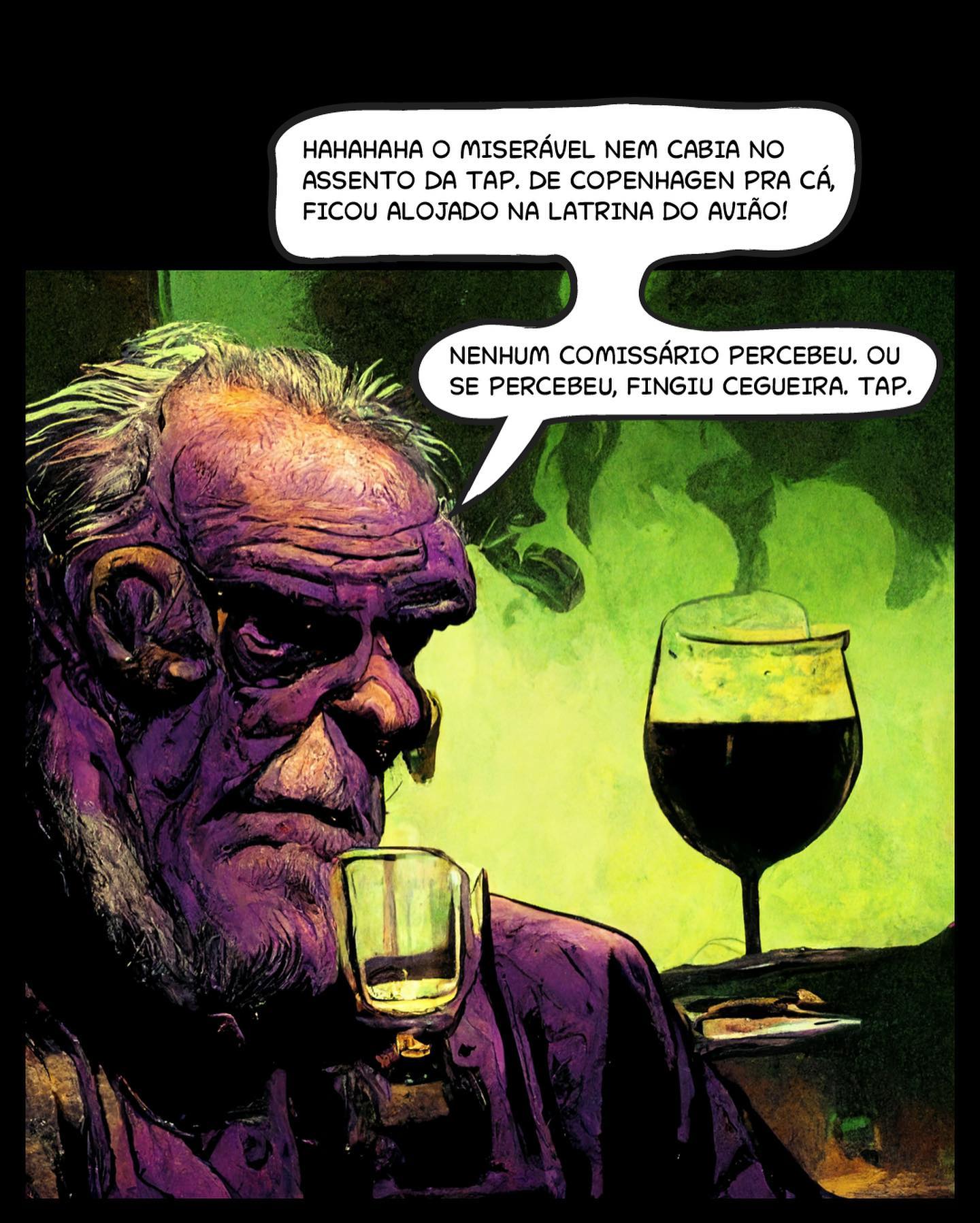 • 4: O homem ri: "HAHAHAHA O MISERÁVEL NEM CABIA NO ASSENTO DA TAP. DE COPENHAGEN PRA CÁ, FICOU ALOJADO NA LATRINA DO AVIÃO! NENHUM COMISSÁRIO PERCEBEU. OU SE PERCEBEU, FINGIU CEGUEIRA. TAP."
