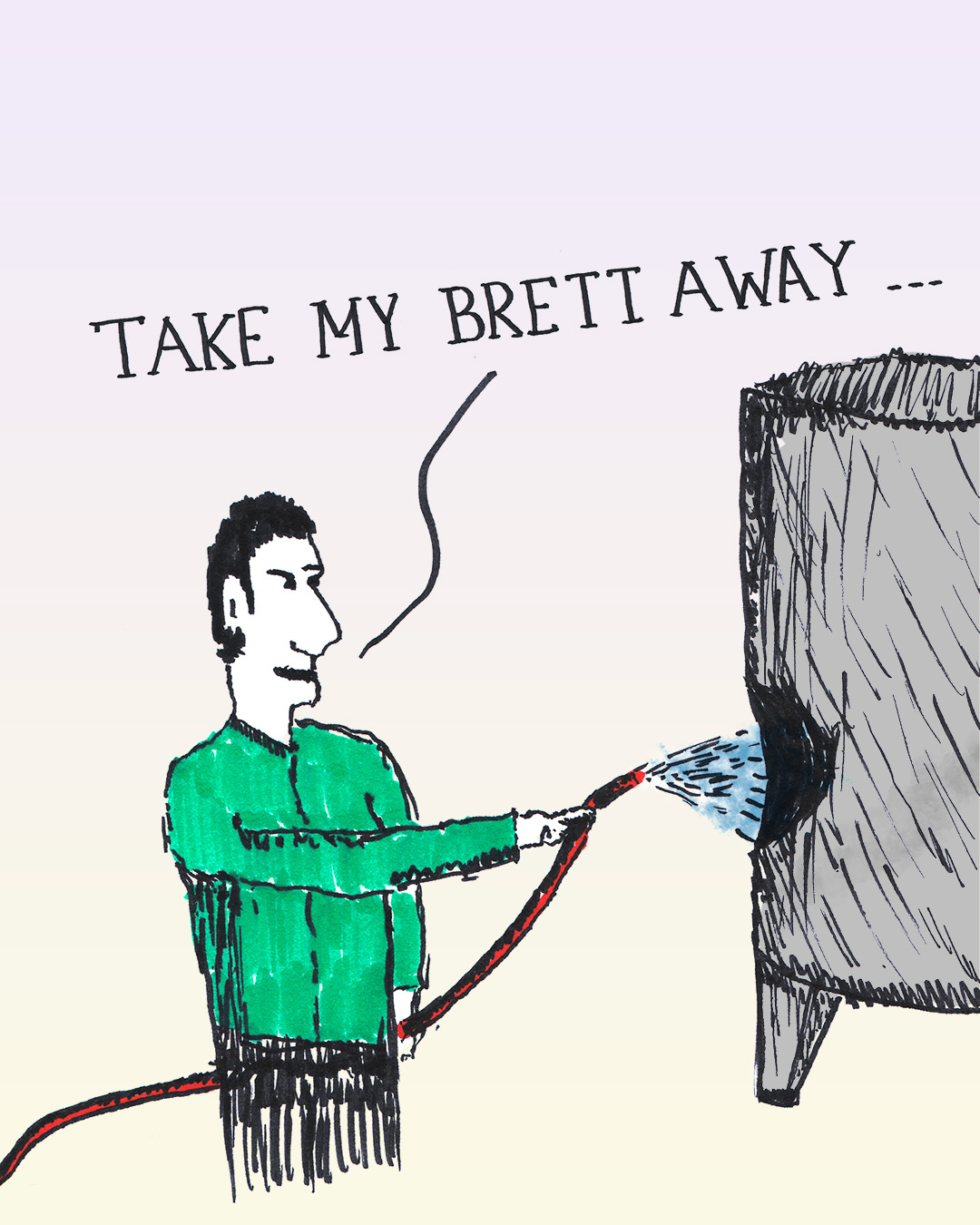Paródia da música Take my breath away, da banda de um hit Berlin. Brett (ou Brettanomyces) é uma levedura presente em adegas e fermentados, que em variados graus de contaminação pode causar desde característica positivas como estrago permanente ao vinho. A lavagem correta de tanques e cubas pode prevenir a proliferação de brett.