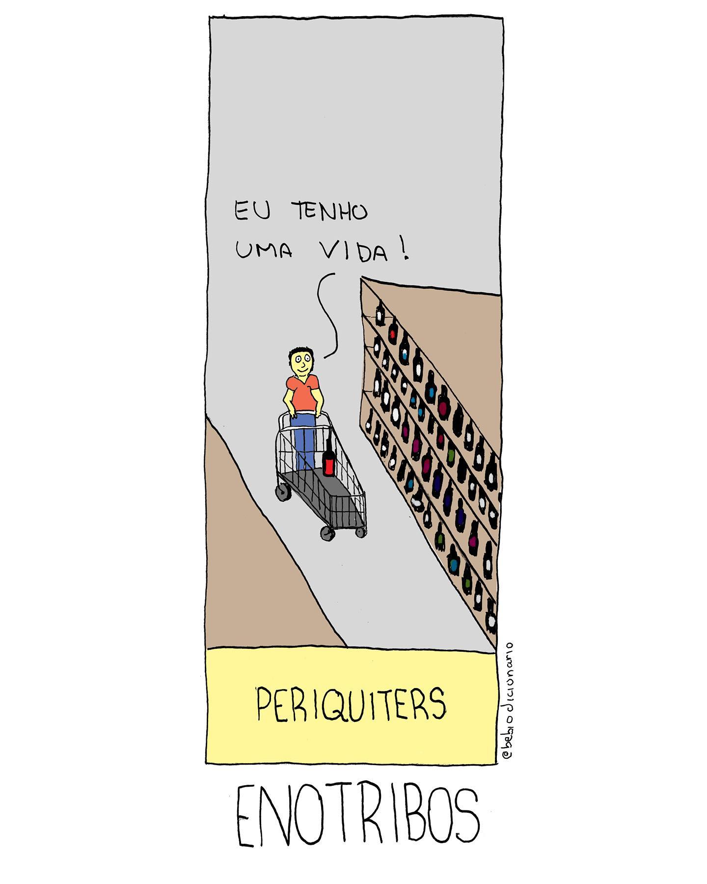 - Periquiters (Os Normais): Refere-se aos consumidores do vinho Periquita, um clássico português de bom custo-benefício e alta disponibilidade. Eles são retratados como os únicos verdadeiramente felizes e saudáveis ("eu tenho uma vida"), pois compram vinho para beber no dia a dia, sem a neurose de status, a paciência excessiva da guarda ou a "desconstrução" forçada da lata.