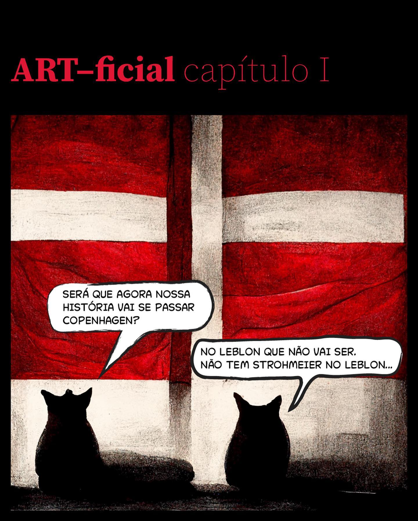 - Gato da esquerda: "SERÁ QUE AGORA NOSSA HISTÓRIA VAI SE PASSAR COPENHAGEN?"