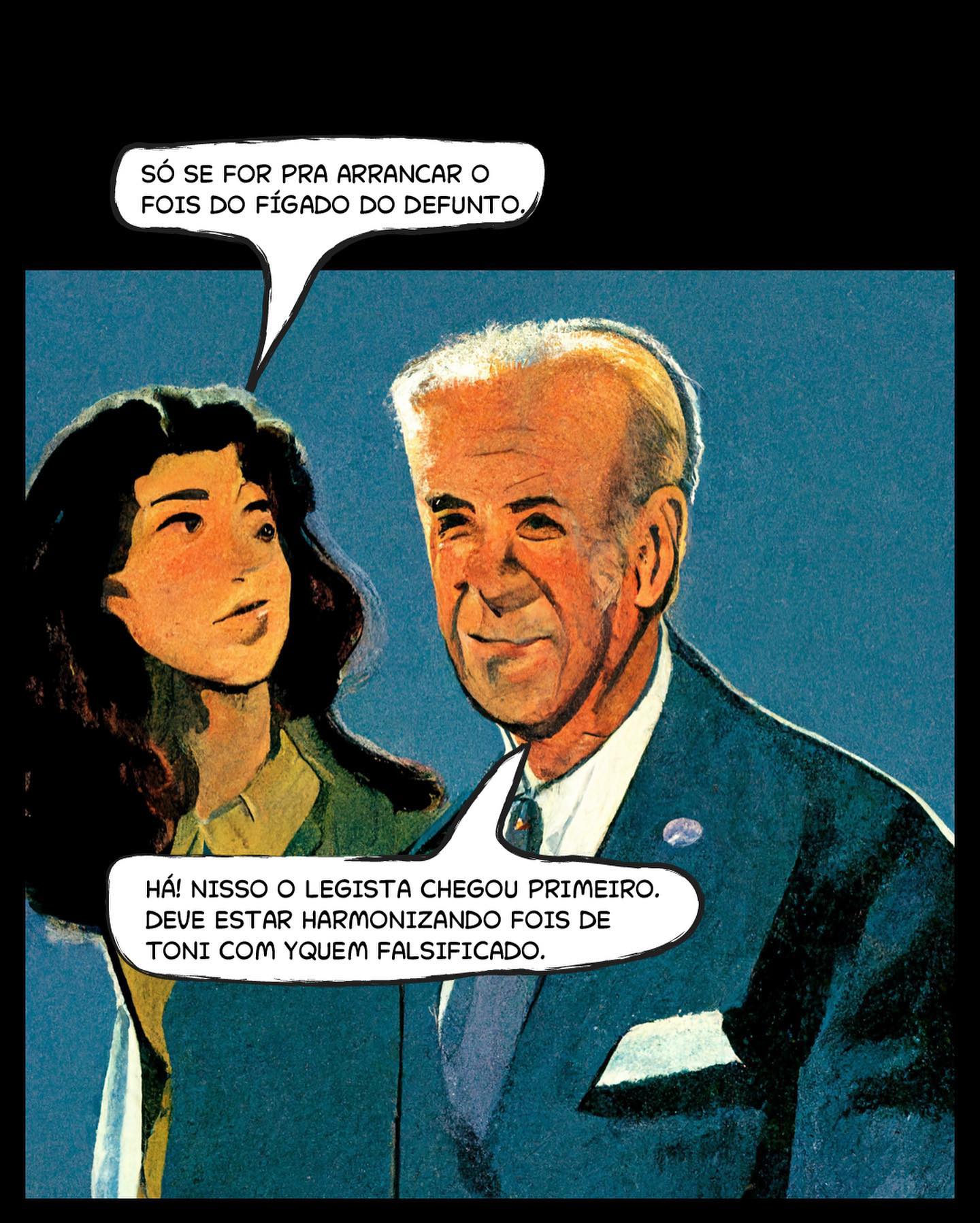 7: Close-up estilo retrô de Tina e Mec conversando.