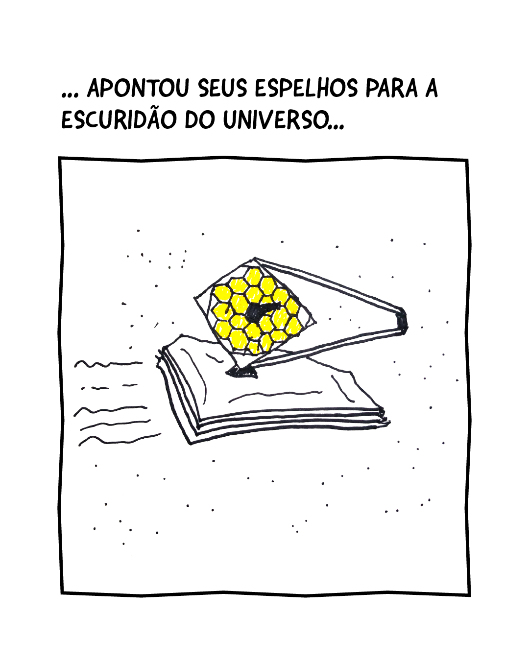 | ...APONTOU SEUS ESPELHOS PARA A ESCURIDÃO DO UNIVERSO... | Telescópio com os espelhos armados |
