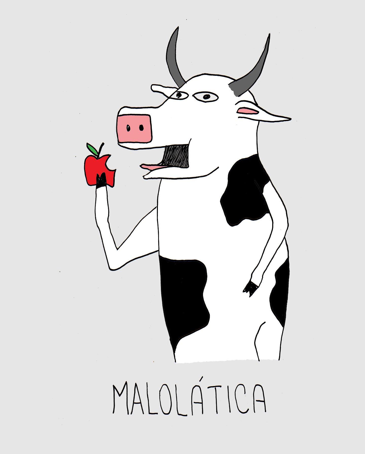 Abaixo da ilustração, em letras de forma pretas e irregulares (estilo manuscrito), lê-se o título da piada: "MALOLÁTICA".