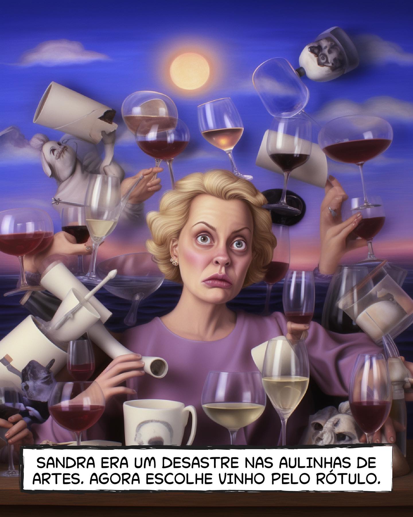 - "Sandra era um desastre nas aulinhas de artes. Agora escolhe vinho pelo rótulo."