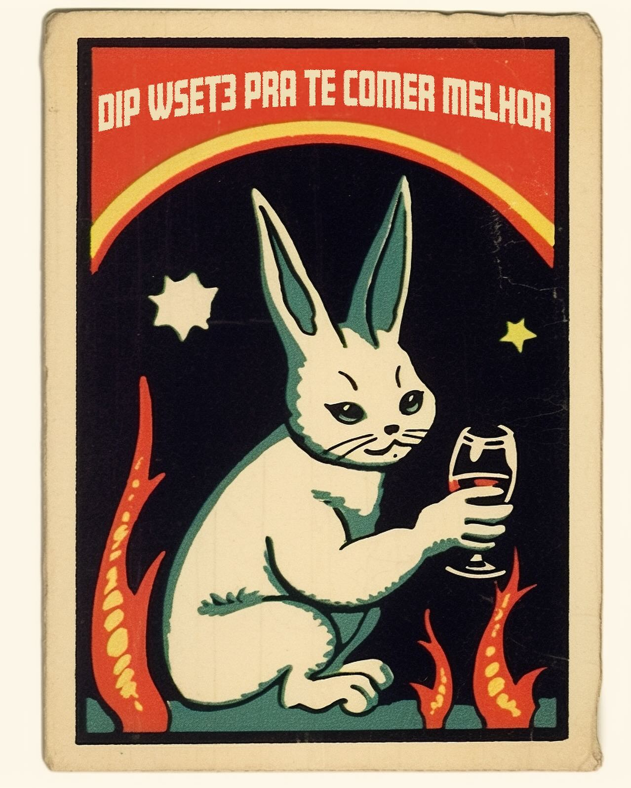 - "DIP WSET3 PRA TE COMER MELHOR": Coelho branco segurando uma taça. Trocadilho com a história da Chapeuzinho Vermelho ("Pra te ver melhor") e a certificação WSET Nível 3 (Diploma/Dip).