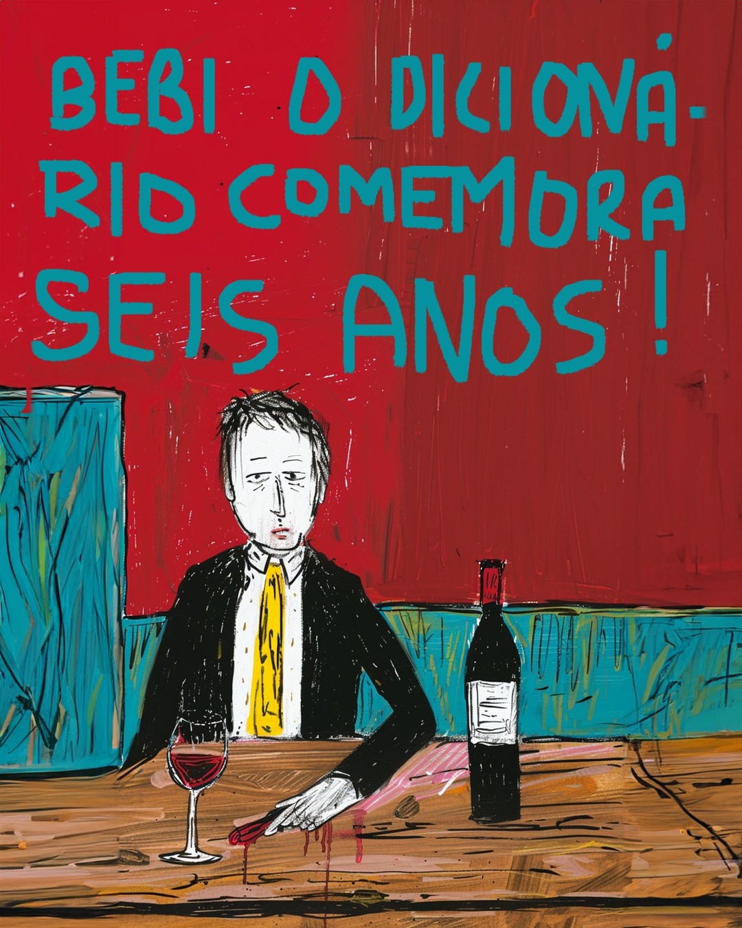 1. Capa: Homem de terno sentado à mesa com um vinho tinto. Texto: "BEBI O DICIONÁRIO COMEMORA SEIS ANOS!".