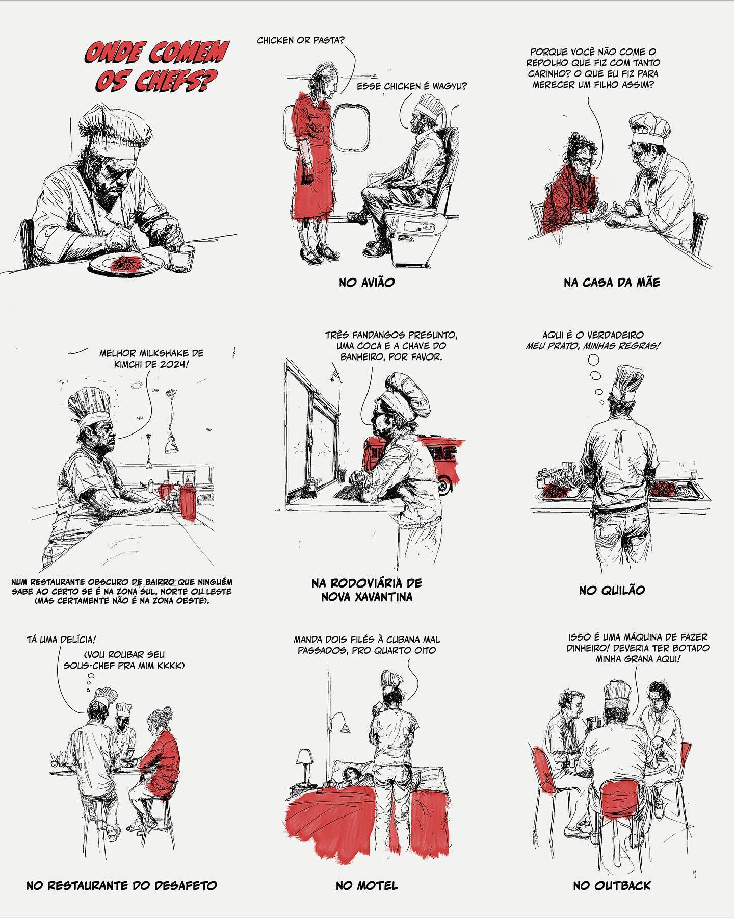 Uma paródia divertida que quebra a aura de sofisticação dos chefs famosa na mídia. Mostra que, longe das câmeras, eles comem Fandangos em rodoviária, admiram redes de fast-food (pela lucratividade), são ingratos com a comida da mãe, pedem comida "trash" no motel, e elogiam comidas "estranhas" (milkshake de kimchi) só para parecerem descolados/antenados.