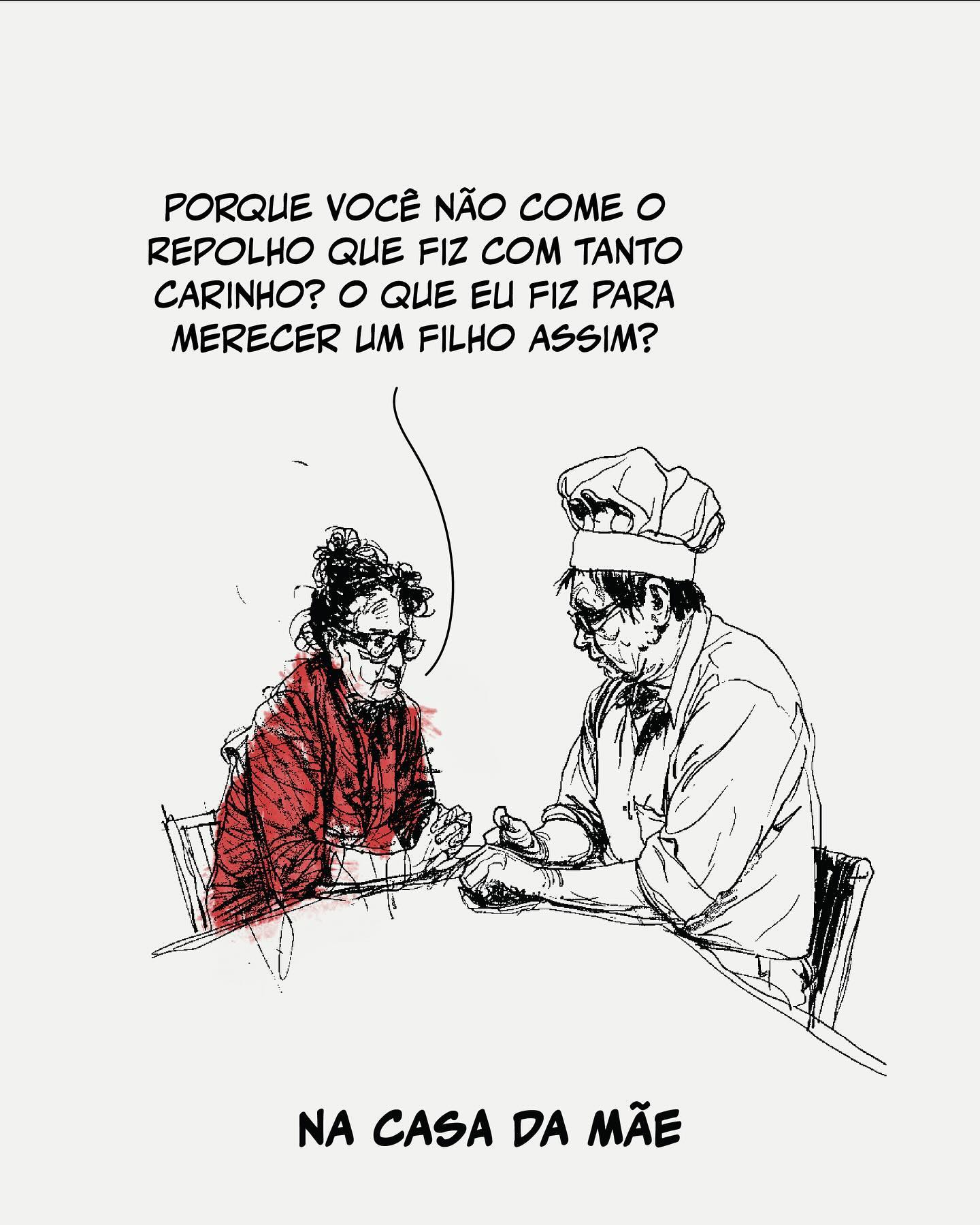 3. Na Casa da Mãe: Mãe reclamando: "Porque você não come o repolho que fiz com tanto carinho? O que eu fiz para merecer um filho assim?".