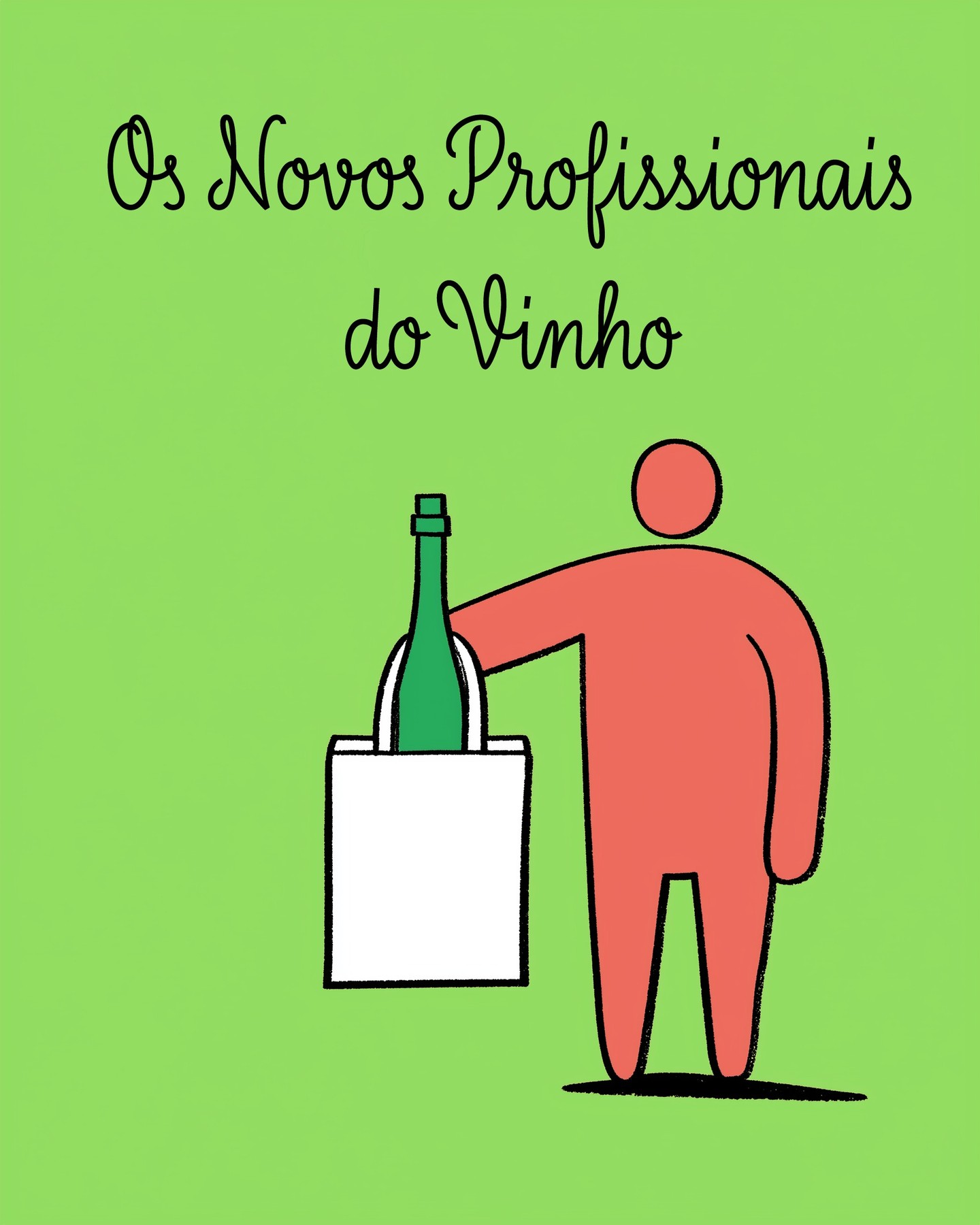 1. Título: "Os Novos Profissionais do Vinho". Figura segurando uma sacola com uma garrafa.